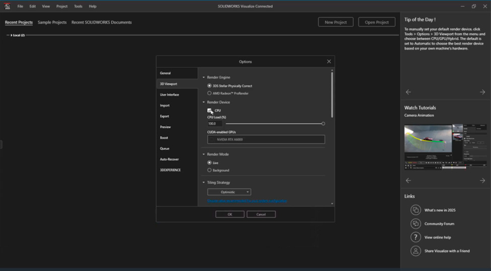 O que há de novo no SOLIDWORKS Visualize R2025x FD02